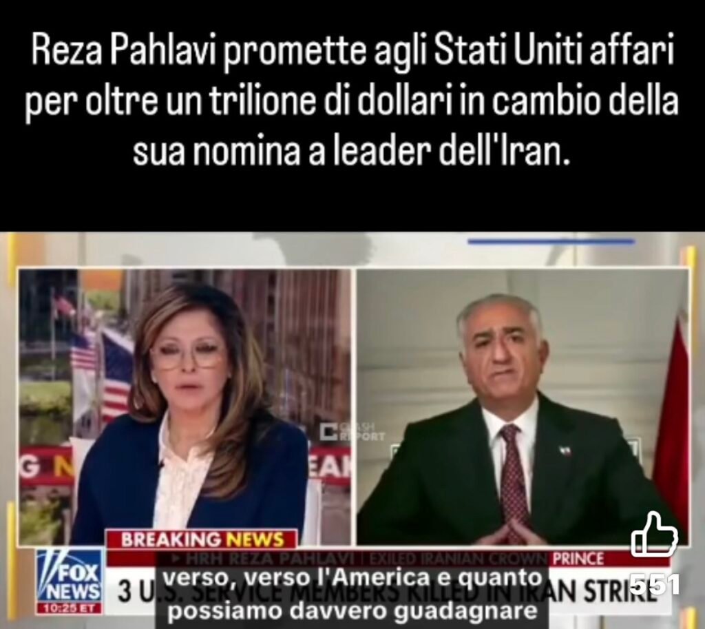 Intanto l’ex principe ereditario iraniano, figlio dello sciá deposto ed accolto amorevolmente in USA, ora promette agli Stati Uniti affari per oltre un trilione di dollari.