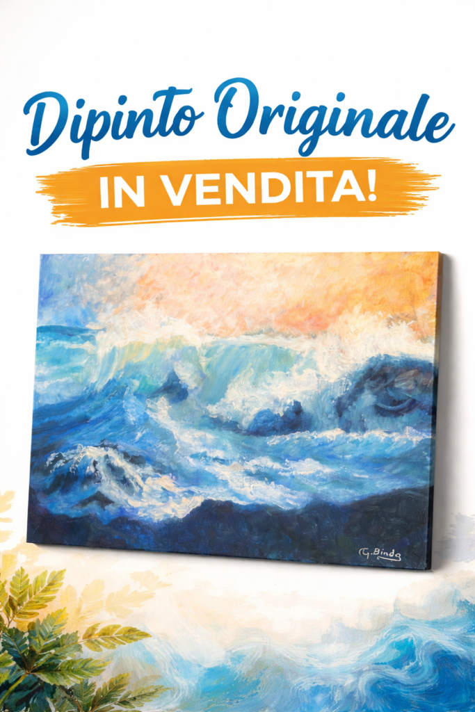 “Onde di Emozioni” non è semplicemente una rappresentazione visiva di un paesaggio marino, ma un’esplorazione dei sentimenti interiori che il mare può evocare. Binda cattura la bellezza cruda e la forza imprevedibile della natura, trasformando l’osservatore in un testimone privilegiato di un momento epico. Questo dipinto è una testimonianza dell’abilità dell’artista nel trasporre la potenza dell’ambiente naturale in un’espressione artistica che vibra di vita e passione.