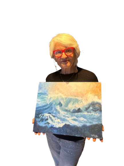“Onde di Emozioni,” dipinto dell’artista Gianna Bianda, è un’opera che cattura l’essenza dinamica e travolgente del mare in burrasca.