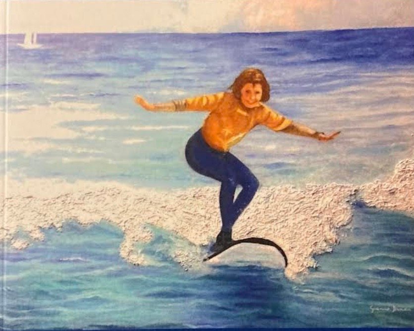 L’immagine di copertina di questo mio romanzo è un mio olio su tavola. Ero alla ricerca di un simbolo di libertà e mia figlia Silvia mi inviò una sua foto mentre stava imparando l’uso della tavoletta da surf. Lo interpretai come una comunicazione dell’Universo e lo dipinsi.